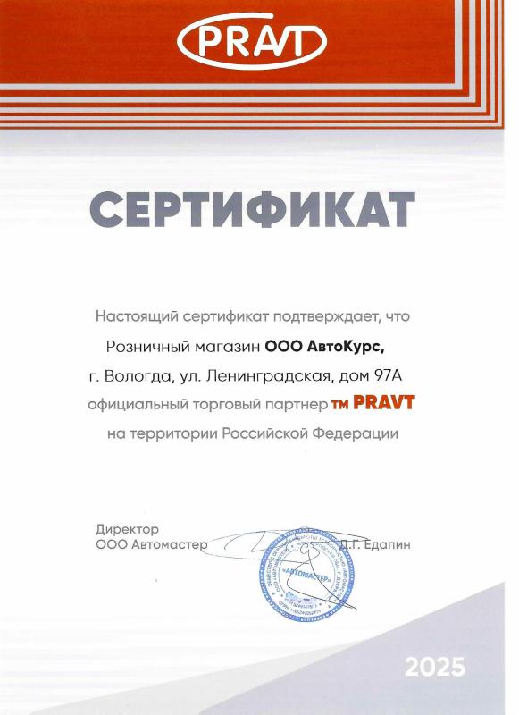 Мы всегда выбираем только проверенных поставщиков запасных частей. Это или заводы-изготовители или официальные дилеры! Все для того, чтобы гарантировать нашим клиентам высочайшее качество продукции. Сотрудничество с ТМ PRAVT — еще один шаг в укреплении наших стандартов и доверия.